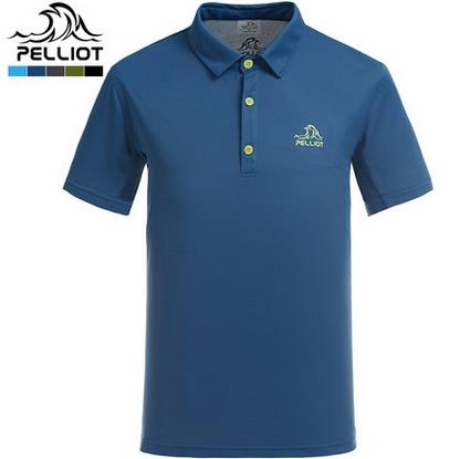 法国PELLIOT速干t恤男短袖 正品运动排汗快干速干衣翻领户外T恤男